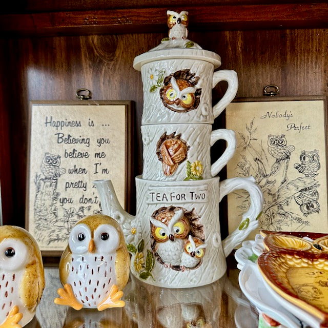 Discover meticulously curated vintage pieces and an abundance of collectibles, glassware, and fiber arts instruments. Plus an enormous owl collection ready to join new collections.